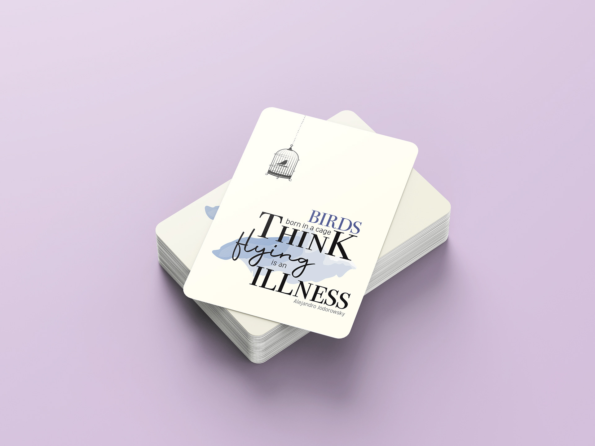 A quote was designed in the form of a playing card with minimal illustrative elements to focus on the literary and typographic pieces.